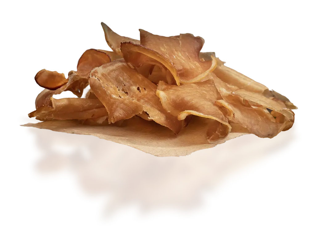 После окончания процессов созревания, вяления и копчения каждый кусочек попадает в камеры отдыха для того, чтобы вкус равномерно распределился, набрал силу и, спустя время наконец‑то, сухой, тонкий и хрустящий попал в упаковку и на стол к нашим любимым клиентам.